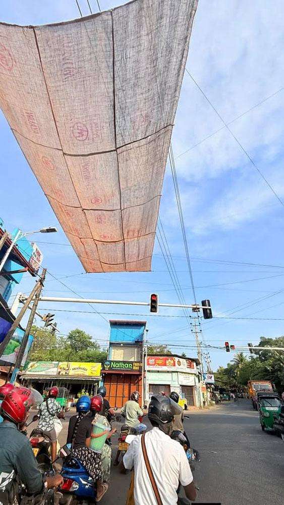யாழ்ப்பாணம், திருநெல்வேலி சந்தி சமிக்ஞை விளக்குப் பகுதியில், நல்லூர் பிரதேச சபையினரால் சாக்குத் துணிகளைக் கொண்டு தற்காலிக நிழற்பந்தல் ஒன்று அமைக்கப்பட்டுள்ளது. கடும் வெயிலுக்கு மத்தியில் பயணிக்கும் வாகன ஓட்டிகள் மற்றும் துவிச்சக்கரவண்டிப் பயணிகளுக்கு தற்காலிக நிழல் வழங்கும் நோக்கில் இந்த முயற்சி மேற்கொள்ளப்பட்டுள்ளது.